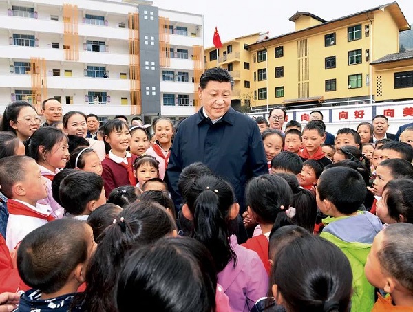 ▲2019年4月15日至17日,中共中央总书记、国家主席、中央军委主席习近平在重庆考察,并主持召开解决“两不愁三保障”突出问题座谈会。这是4月15日下午,习近平在石柱土家族自治县中益乡小学同师生亲切交谈,了解义务教育保障情况。新华社记者 谢环驰/摄
